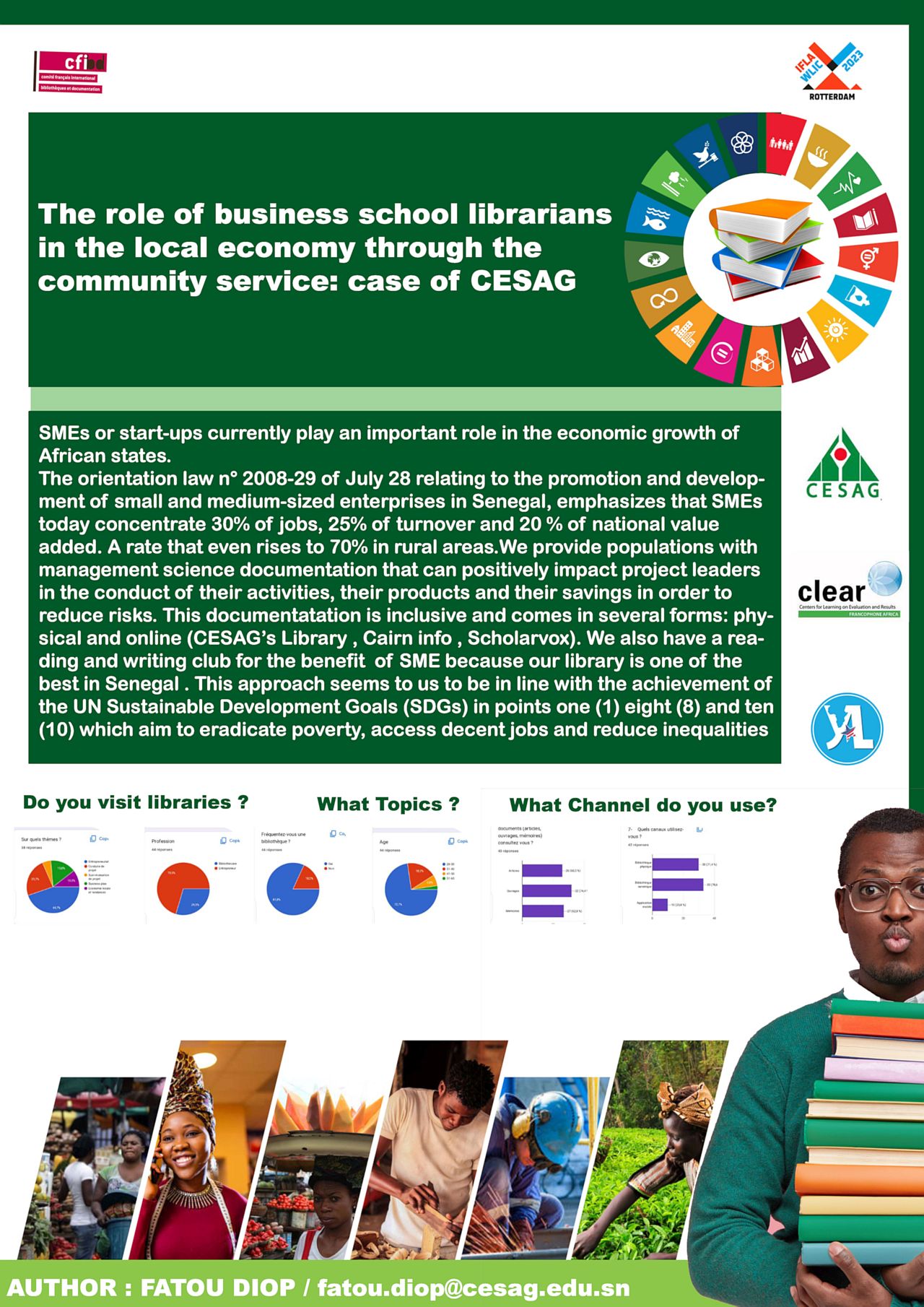Small and Medium sized Enterprises (SMEs) or start ups currently play an important role in the economic growth of African states. The orientation law 2008 29 of 28 July relating to the promotion and development of small and medium sized enterprises in Senegal, underlines that SMEs now concentrate 30% of jobs, 25% of turnover and 20% of added national value. A rate that even goes up to 70% in rural areas. We provide populations with documentation in management sciences that can positively impact project leaders in the conduct of their activities and their savings to reduce risks. This documentation is inclusive and comes in several forms: physical and online (CESAG’s library, Cairn info, Scholarvox.) We also have a reading club and and create writing workshops for our readers as our library is one of the best in Senegal. This approach seems to us to be in line with the achievement of the United Nations Sustainable Development Goals (SDGs) in points one (1) and ten (10) aim to eradicate poverty and reduce inequalities.