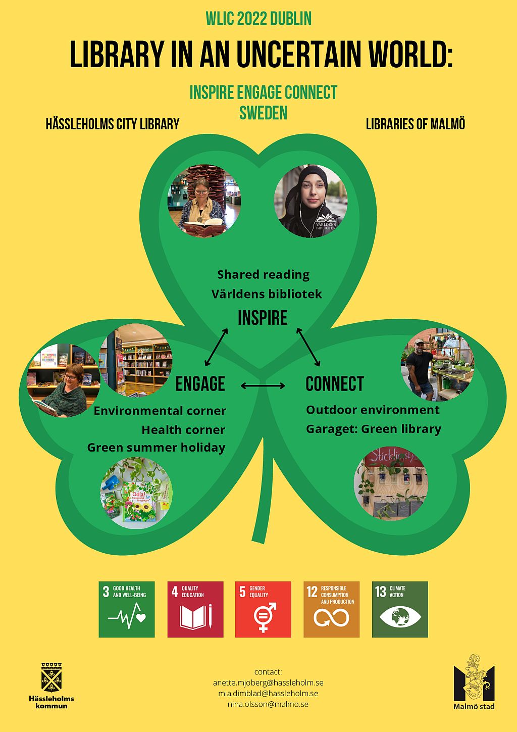 Our poster will give highlights how our libraries engage, connect and inspire citizens to work with the SDG and promote a sustainable life. In Hässleholm we have organized a new area "Sustainable corner" for materials concerning environmental subjects. For families we have "Green Saturday" in the Childrens Library. For example could they last summer fetch a "Green vacation bag" with seeds, a book and garden tools. We have set up a "Health Corner" with books, materials and lectures about health.
