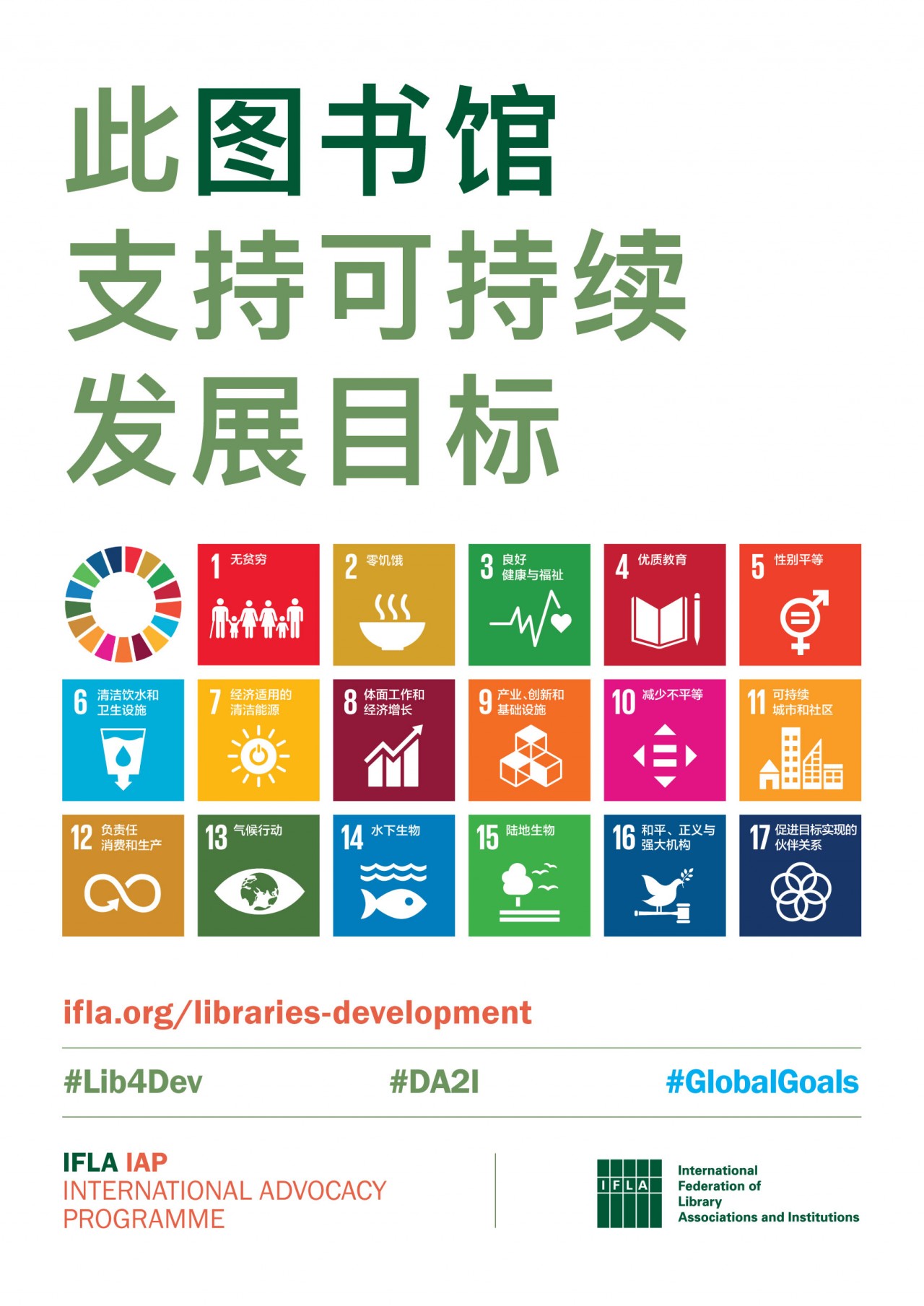 As part of IFLA's global campaign to highlight the importance of libraries as partners for development, we have prepared this poster to mark the Global Day of Action for the SDGs on 25 September 2018. We encourage librarians around the world to print this poster and put it up in their libraries to raise awareness of how their work helps achieve the Sustainable Development Goals (SDGs).