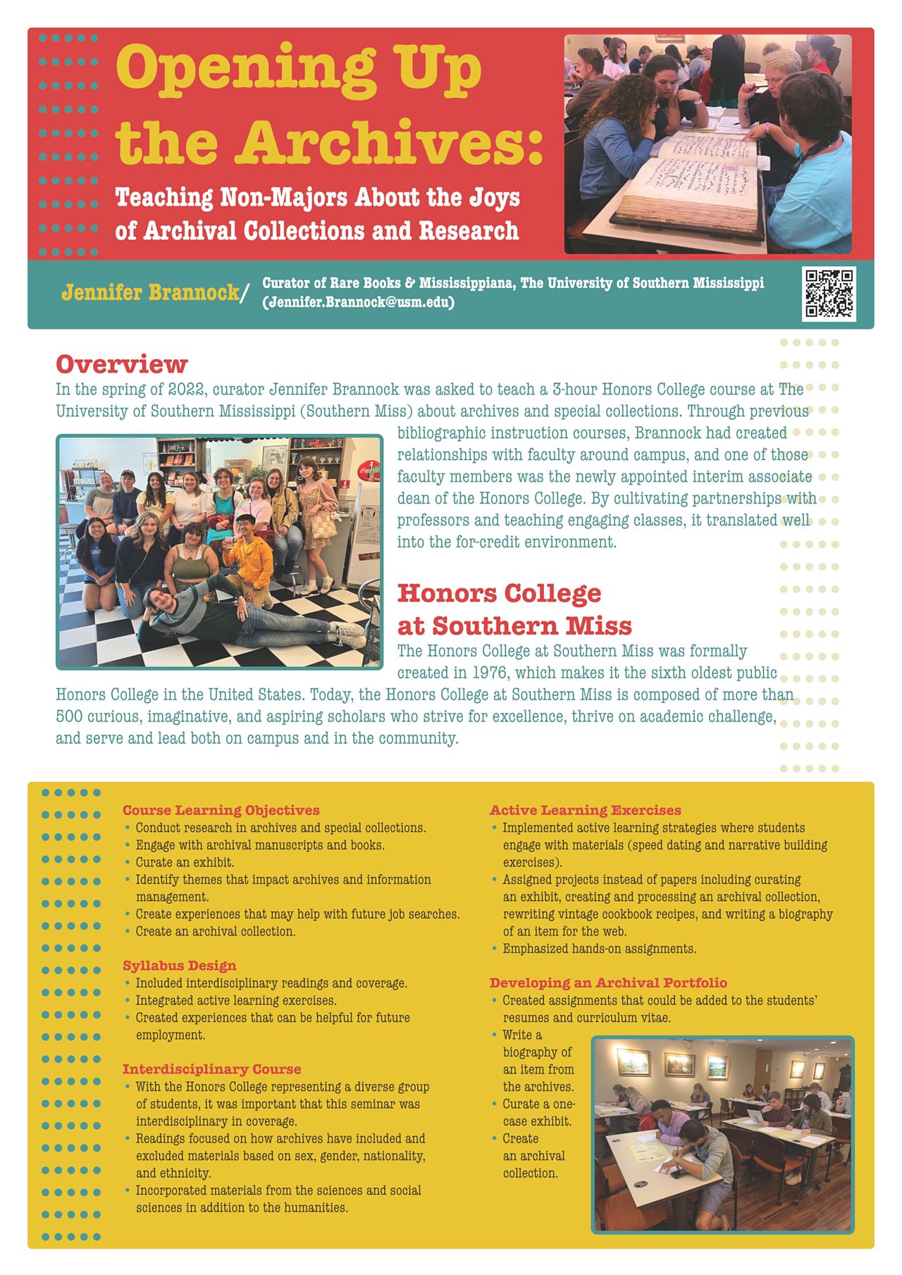 - Poster: Opening Up the Archives: Teaching Non-Majors About the Joys of Archival Collections and Research