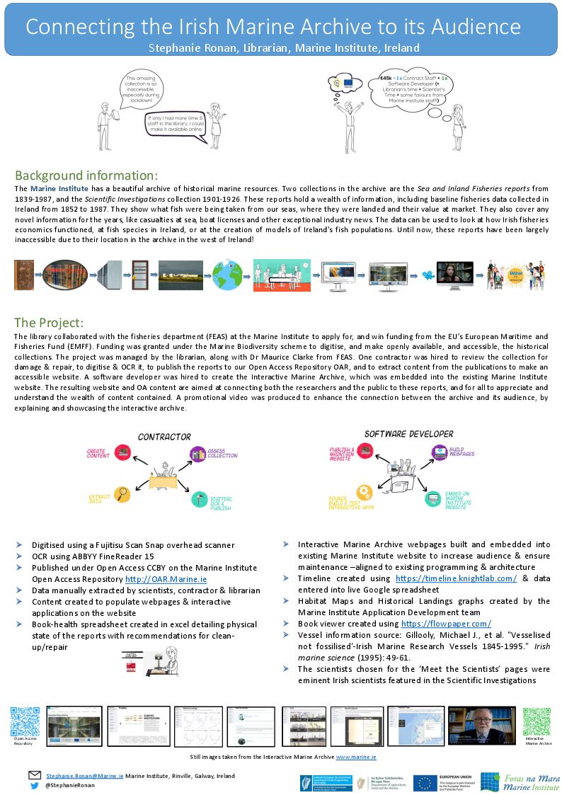The Marine Institute Ireland, recently launched an Interactive Marine Archive comprised of digitised and visualised, historical resources dating back to 1839. This digitisation and accessibility project should INSPIRE staff to ENGAGE with the library archive in an effort to CONNECT the historical content to the appropriate audience. The project could serve as a blueprint to staff to ENABLE them to breathe new life into the old collections.